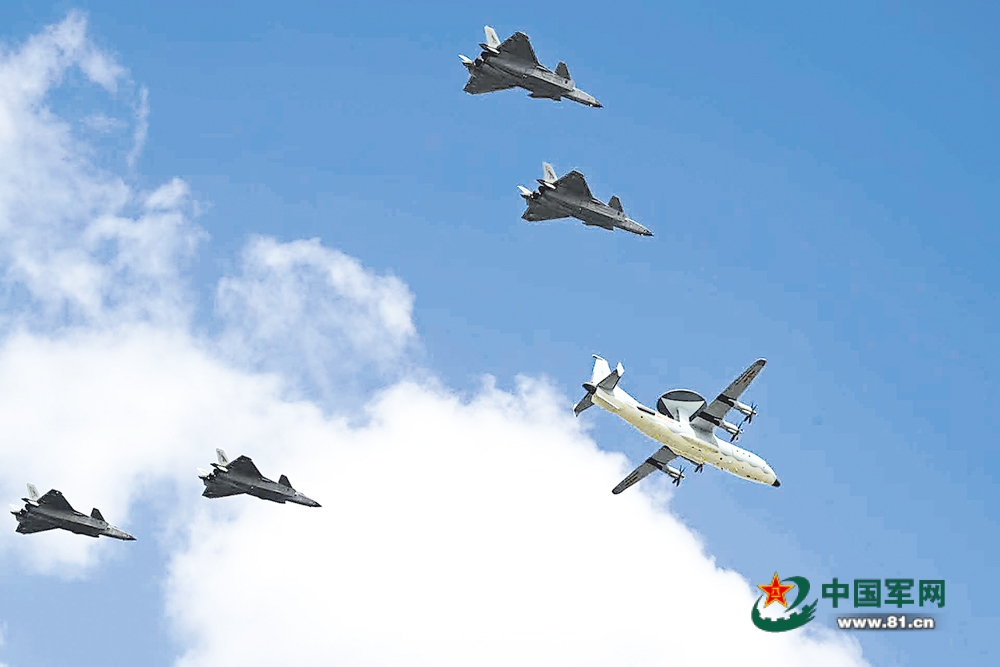 在第十一屆空軍航空開(kāi)放活動(dòng)和長(zhǎng)春航空展上,空警-500與殲-20四機(jī)編隊(duì)通場(chǎng)。余紅春攝