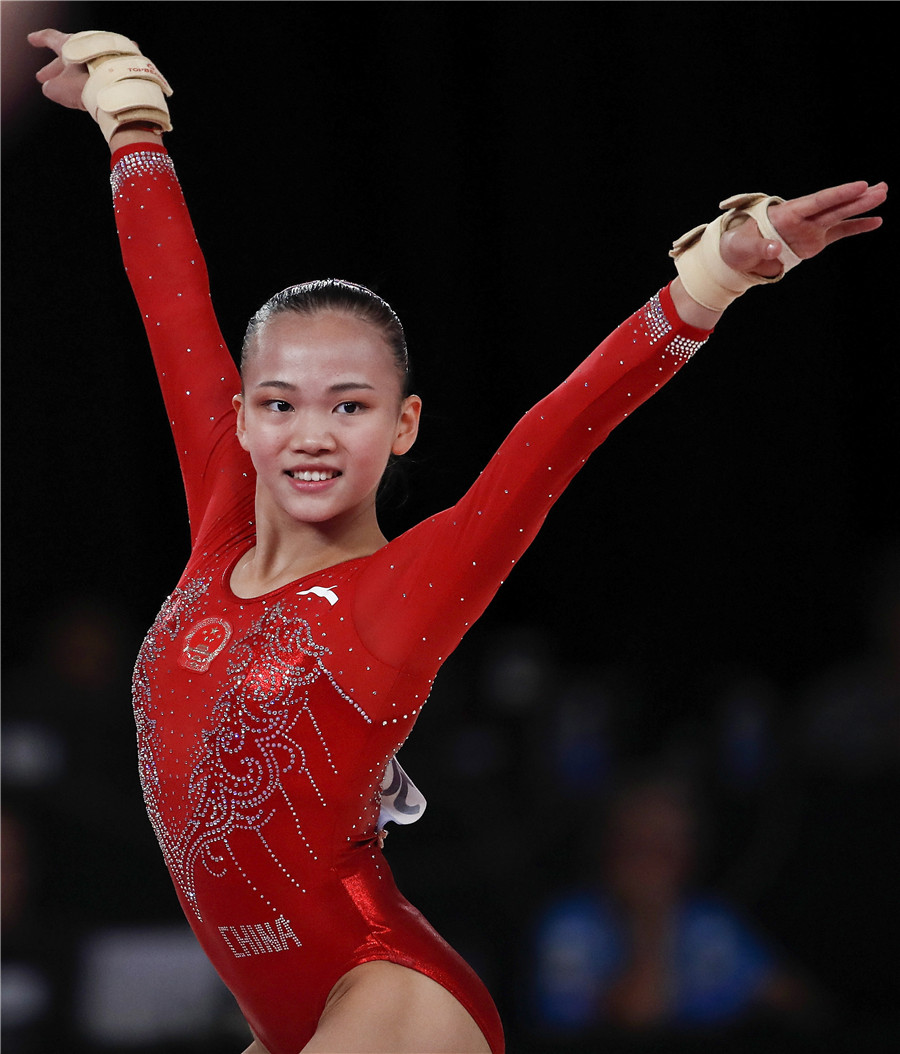 圖為8月21日,中國(guó)選手陳一樂在第18屆亞運(yùn)會(huì)體操女子個(gè)人全能決賽自由操比賽中。她以55.950分的總成績(jī)獲得冠軍。新華社記者王麗莉攝