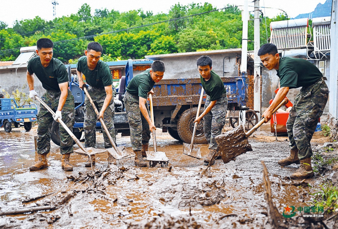 7月31日,武警北京總隊(duì)某支隊(duì)官兵在北京市平谷區(qū)鎮(zhèn)羅營鎮(zhèn)關(guān)上村清淤。中國國防報(bào)記者 穆瑞林 攝