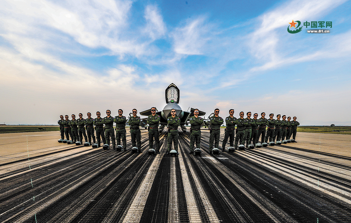 飛行員與殲-20合影。