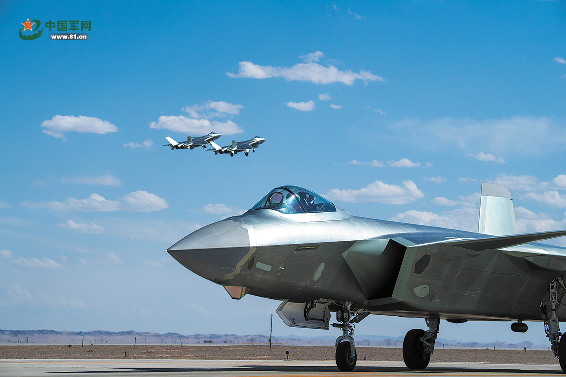 初夏大漠,隨著幾枚信號彈升空,空軍某部數(shù)架殲-20戰(zhàn)機(jī)加速起飛,直入云端,以戰(zhàn)斗隊(duì)形向目標(biāo)區(qū)域機(jī)動……