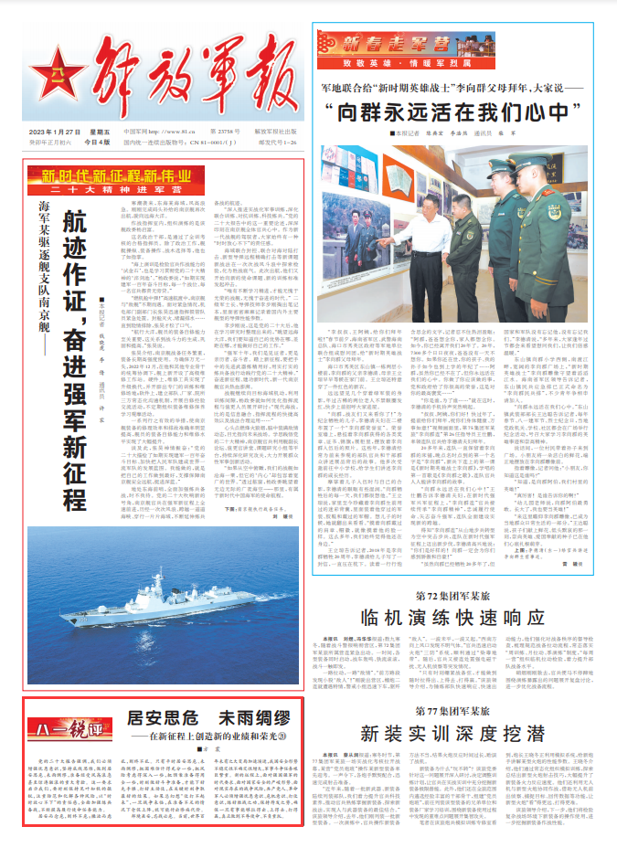 黨的二十大報告強(qiáng)調(diào),我們必須增強(qiáng)憂患意識,堅(jiān)持底線思維,做到居安思危、未雨綢繆,準(zhǔn)備經(jīng)受風(fēng)高浪急甚至驚濤駭浪的重大考驗(yàn)。這一要求啟示我們,要時刻保持見葉知秋的敏銳,注重防范和化解各種風(fēng)險,以“時時放心不下”的責(zé)任感,全面加強(qiáng)練兵備戰(zhàn),不斷提高履行使命任務(wù)能力。