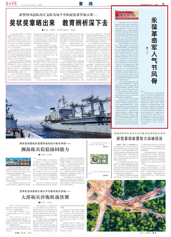 習(xí)主席指出:“共產(chǎn)黨人任何時(shí)候都要有不信邪、不怕鬼、不當(dāng)軟骨頭的風(fēng)骨、氣節(jié)、膽魄?!崩茄郎轿鍓咽繅蚜姨?,烏斯渾河上八女投江,趙一曼身受酷刑堅(jiān)貞不屈……在艱苦卓絕的抗日戰(zhàn)爭(zhēng)中,無數(shù)革命先輩,或?yàn)r血孤營(yíng),或橫刀敵陣,或裂身銀漢,或碎首沙場(chǎng),充分彰顯出革命軍人特有的氣節(jié)風(fēng)骨。今天,我們弘揚(yáng)偉大抗戰(zhàn)精神,續(xù)寫英雄人民軍隊(duì)的浴血榮光,很重要的就是永葆革命軍人氣節(jié)風(fēng)骨。