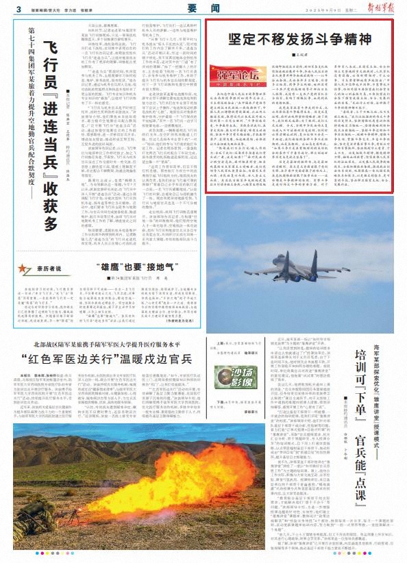 歷史是最好的教科書,也是最好的清醒劑。在大是大非面前敢于亮劍交鋒,在矛盾沖突面前敢于迎難而上,在危機困難面前敢于挺身而出……這些都是斗爭精神的體現(xiàn)。軍事斗爭是進行偉大斗爭的重要方面。對于革命軍人來說,在國家主權(quán)、安全和領(lǐng)土完整遇到重大挑戰(zhàn)時,人民軍隊沒有退路,必須針鋒相對、寸土必爭。習主席曾擲地有聲地指出:“中國人民不信邪也不怕邪,不惹事也不怕事,任何外國不要指望我們會拿自己的核心利益做交易,不要指望我們會吞下?lián)p害我國主權(quán)、安全、發(fā)展利益的苦果?!睙o論什么時候,這種敢于斗爭的精神都不能少。