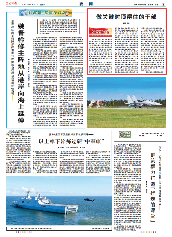“人在事上練,刀在石上磨?!秉h員干部應(yīng)把個(gè)人理想抱負(fù)融入強(qiáng)軍實(shí)踐,該做的事,知重負(fù)重、攻堅(jiān)克難,頂著壓力也要干;該負(fù)的責(zé),挺身而出、沖鋒在前,冒著風(fēng)險(xiǎn)也要擔(dān),自覺做起而行之的行動(dòng)者、不做坐而論道的清談客,當(dāng)攻堅(jiān)克難的奮斗者、不當(dāng)怕見風(fēng)雨的泥菩薩。面對(duì)大是大非敢于亮劍,面對(duì)矛盾敢于迎難而上,面對(duì)危機(jī)敢于挺身而出,面對(duì)失誤敢于承擔(dān)責(zé)任,面對(duì)歪風(fēng)邪氣敢于堅(jiān)決斗爭(zhēng),努力練就擔(dān)當(dāng)重任的鐵肩膀、真本領(lǐng)。