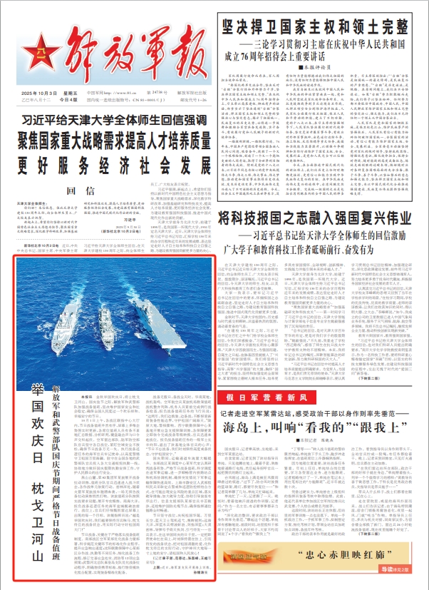 10月1日上午,各戰(zhàn)區(qū)聯(lián)指中心大廳內(nèi),節(jié)日戰(zhàn)備值班井然有序,屏幕上多維態(tài)勢圖實時更新,各席位值班人員有條不紊地匯總數(shù)據(jù)、分析研判,鍵盤敲擊聲與口令聲交織起伏??哲娎走_(dá)部隊、陸軍防空部隊官兵堅守各自戰(zhàn)位,緊盯空域安全不放松,確保節(jié)日戰(zhàn)備萬無一失。執(zhí)行戰(zhàn)備巡邏任務(wù)的海軍官兵牢記使命,以高度警惕守衛(wèi)祖國萬里海疆。駐守在全國各地的武警部隊官兵投入各大交通樞紐執(zhí)勤一線,協(xié)助地方做好國慶假期執(zhí)勤安保工作,守護(hù)人民群眾的出行安全。