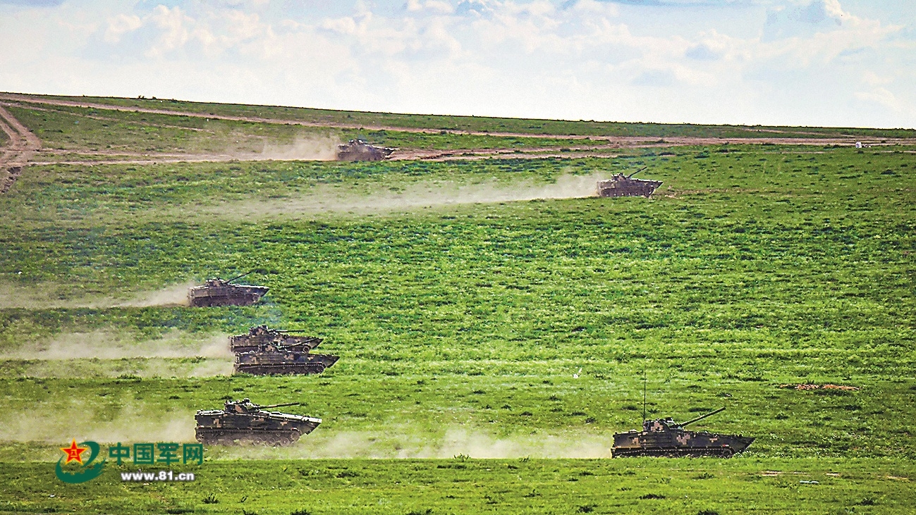 戰(zhàn)術(shù)訓(xùn)練中,官兵駕駛戰(zhàn)車快速機(jī)動。
