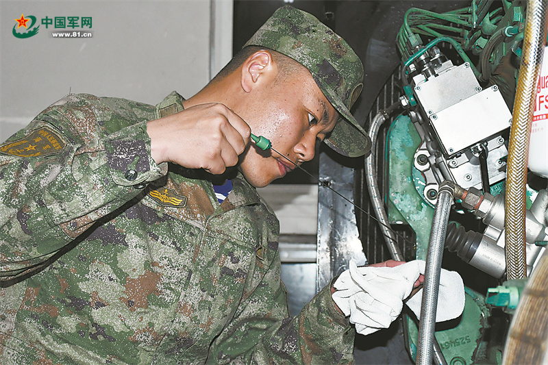 二級上士趙龍濤一身腱子肉,干活時總是沖在前;一級上士楊萬寧學(xué)習(xí)專業(yè)廢寢忘食,經(jīng)常是眼睛酸澀也不肯離開戰(zhàn)位;二級上士李欣陽維修裝備有一手,不修好裝備不睡覺……