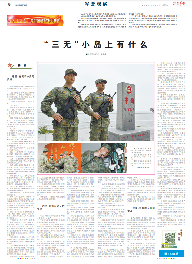 “三無”小島上有什么?采訪時,島上的老兵一方面特別愿意講許多過去的故事,一方面總想把露臉的機會讓給新同志。在這些老兵看來,往昔的艱苦與榮光代表著他們傳承的精神,而年輕的戰(zhàn)友則指引著未來。
