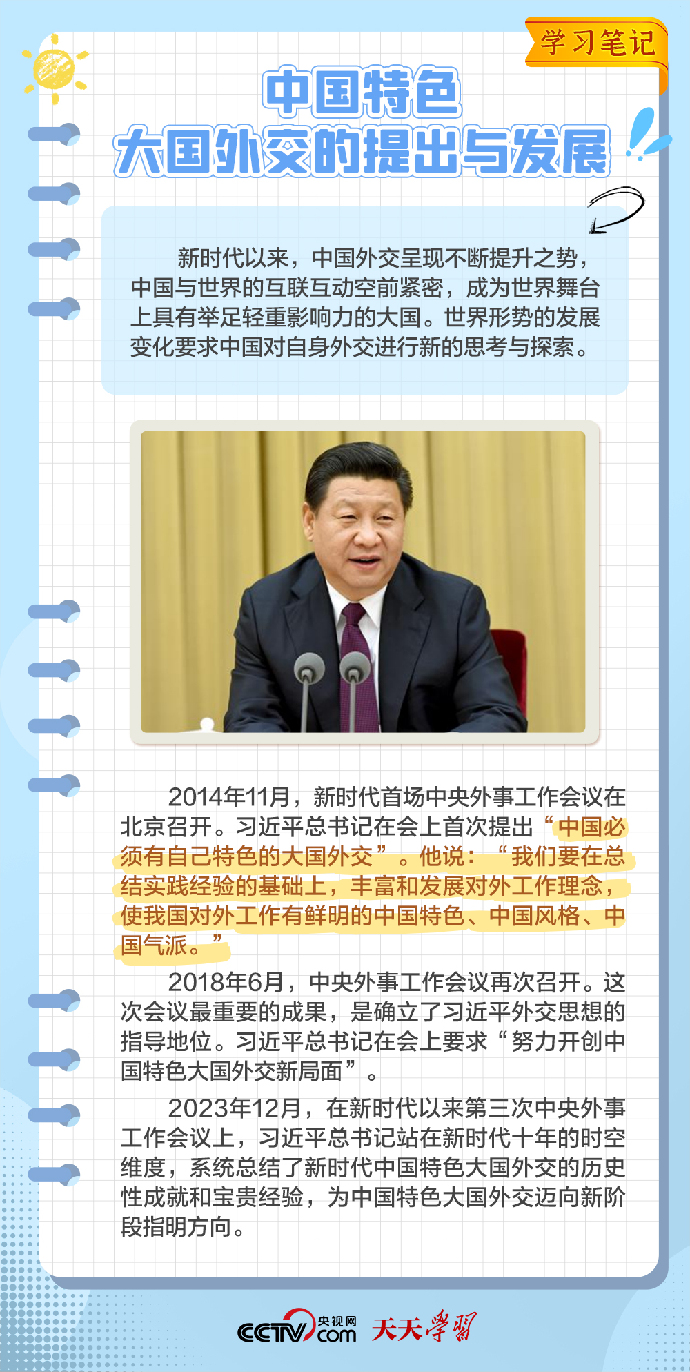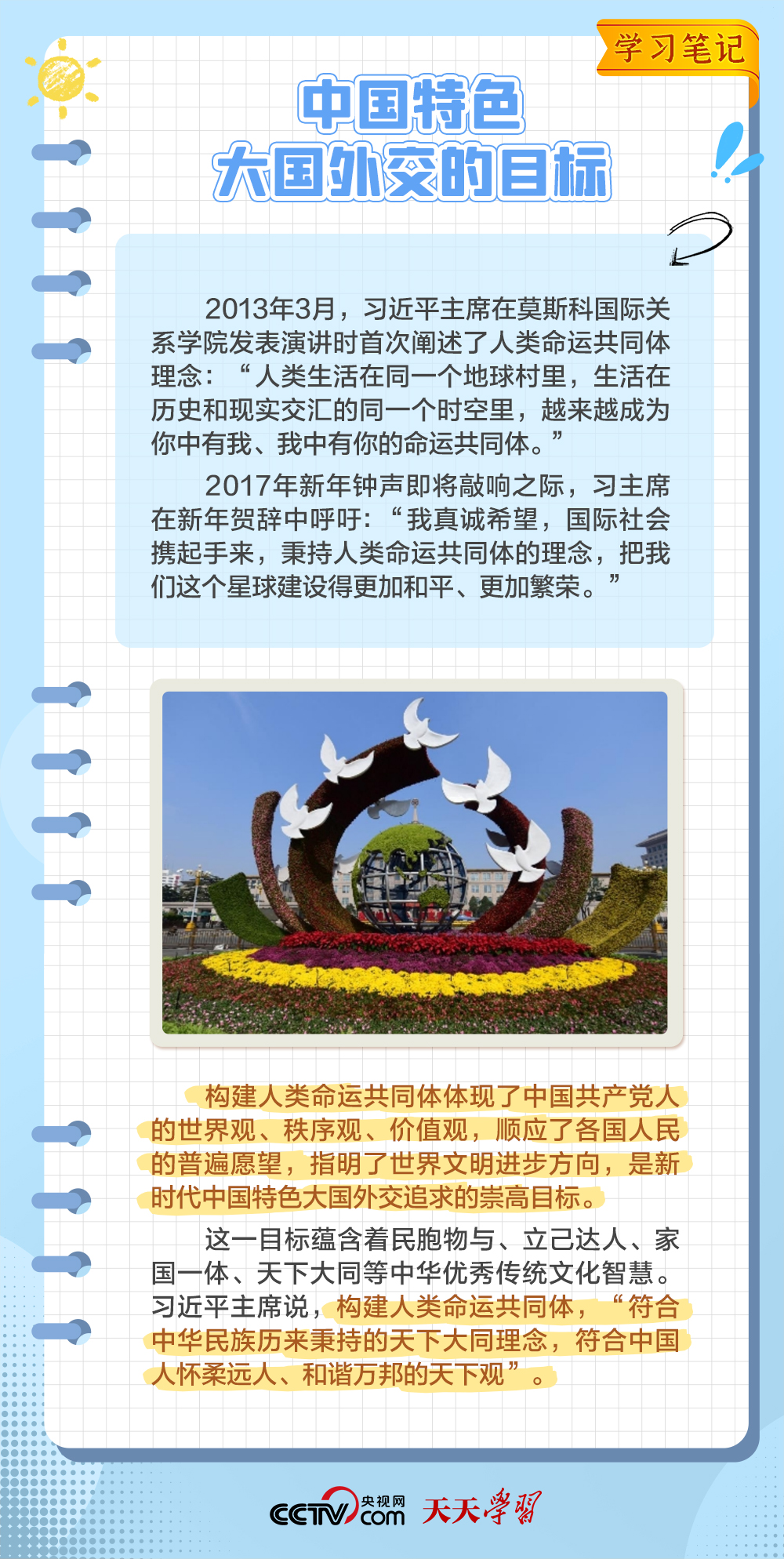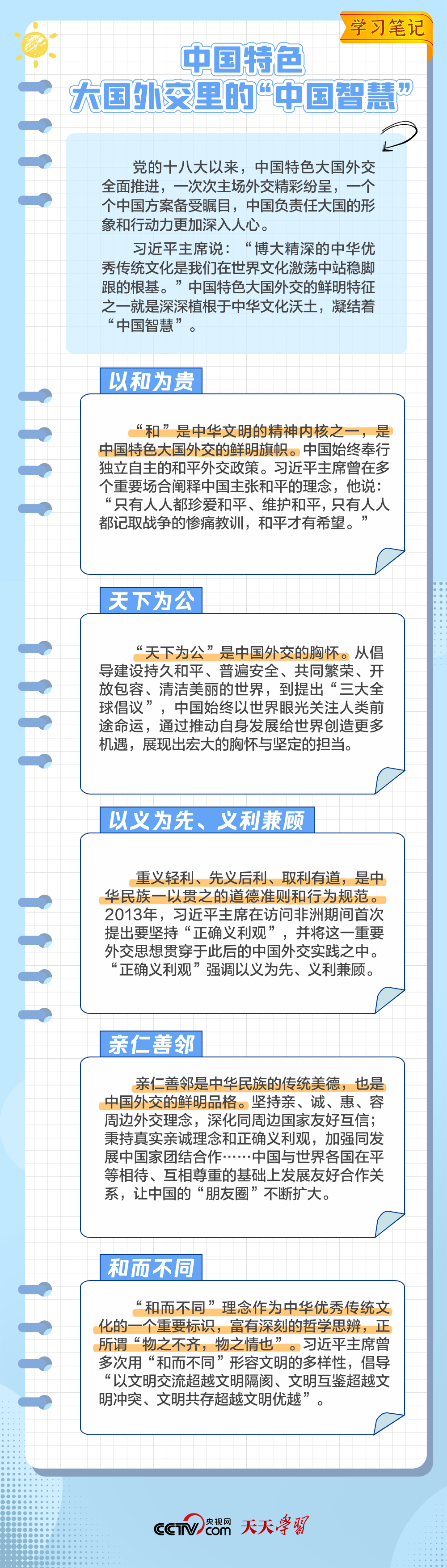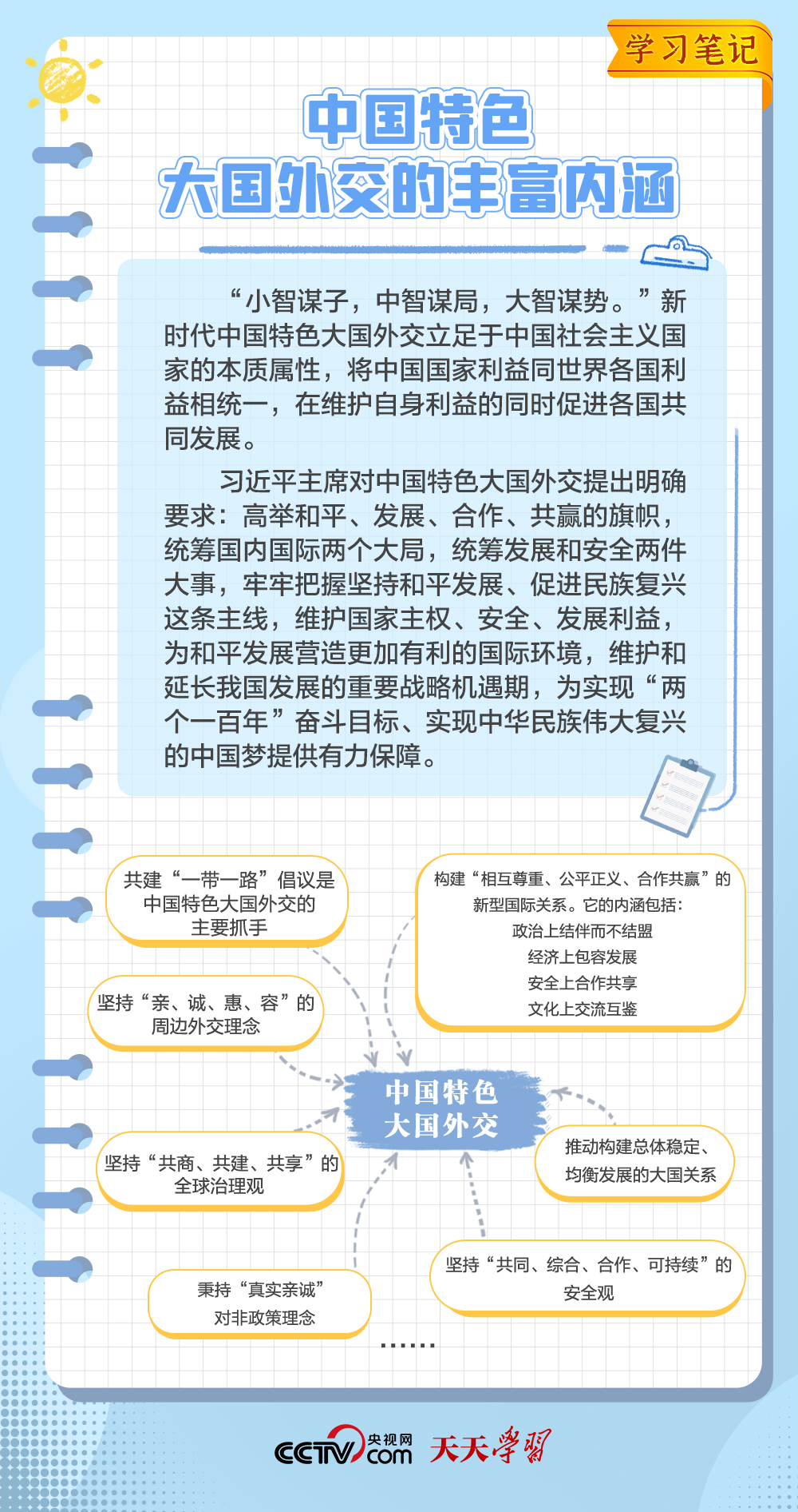 10年來,面對風(fēng)云變幻的國際形勢,中國特色大國外交扎實(shí)推進(jìn),形成了全方位、多層次、立體化的外交布局,為我國高質(zhì)量發(fā)展?fàn)I造了良好外部環(huán)境。中國特色大國外交提出10周年之際,《學(xué)習(xí)筆記》特梳理其內(nèi)涵要義,與您一同感悟其中蘊(yùn)含的“中國智慧”。