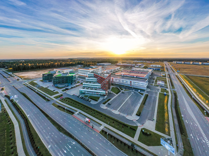 △ 這是當(dāng)?shù)貢r(shí)間2021年10月19日在白俄羅斯首都明斯克郊區(qū)拍攝的中白工業(yè)園。