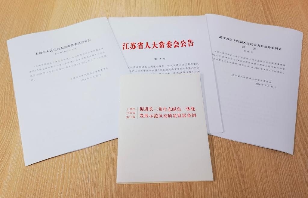《促進(jìn)長(zhǎng)三角生態(tài)綠色一體化發(fā)展示范區(qū)高質(zhì)量發(fā)展條例》發(fā)布。新華社記者 胡潔菲 攝