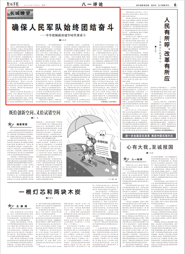 團(tuán)結(jié)奮斗是一種正能量,最怕消極因素和不正之風(fēng)的侵蝕。新時(shí)代以來(lái),我們通過(guò)宣傳正面典型,建立正向激勵(lì)機(jī)制,賡續(xù)政治工作優(yōu)良傳統(tǒng),很好地激勵(lì)廣大官兵踔厲奮發(fā)、篤行不怠,創(chuàng)造輝煌、成就非凡。然而,隨著我國(guó)經(jīng)濟(jì)社會(huì)深刻變革,社會(huì)上一些貪圖安逸、精致利己、消極躺平等不良風(fēng)氣難免影響官兵,部隊(duì)中一些特權(quán)現(xiàn)象和形式主義、官僚主義也在耗散官兵的心氣。解決這些問(wèn)題,更加需要發(fā)揮政治工作作用,讓生命線充分彰顯生命力,引導(dǎo)官兵胸懷理想、堅(jiān)定信仰,樹(shù)立正確的權(quán)力觀政績(jī)觀事業(yè)觀,以團(tuán)結(jié)奮斗的姿態(tài)激揚(yáng)青春、成就夢(mèng)想。