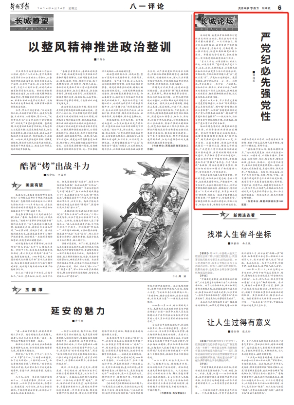 延安時期,我黨在開除拒絕執(zhí)行黨的決定的劉力功后,再次在陜甘寧邊區(qū)開展紀(jì)律教育。一次討論會上,陳云同志這樣指出,讓黨員遵守黨的紀(jì)律,需要教育,需要示范,需要懲罰,但一條不能忘,抓黨紀(jì)要抓好黨性這個源頭。開展黨紀(jì)學(xué)習(xí)教育,各級黨組織一定不能忽視抓好黨性這個源頭。