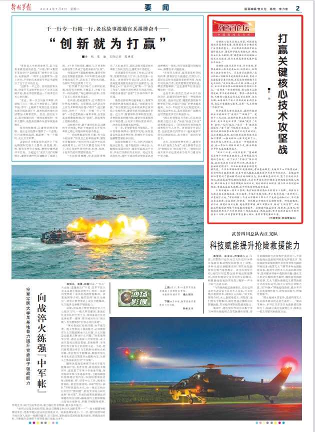 打贏關(guān)鍵核心技術(shù)攻堅(jiān)戰(zhàn),要求加快推進(jìn)高水平科技自立自強(qiáng)??萍甲粤⒆詮?qiáng)是國(guó)家強(qiáng)盛之基、安全之要,不僅是發(fā)展問(wèn)題,更是生存問(wèn)題?!暗蕾F制人,不貴制于人也?!避婈?duì)科技工作者應(yīng)牢固樹立敢為天下先的志向和信心,堅(jiān)定推進(jìn)自主創(chuàng)新、原始創(chuàng)新,加緊在一些戰(zhàn)略必爭(zhēng)領(lǐng)域形成獨(dú)特優(yōu)勢(shì)。盯住戰(zhàn)略性、前沿性、顛覆性技術(shù)發(fā)展,超前預(yù)置布局,強(qiáng)化軍事應(yīng)用,鍛造“大國(guó)重器”,不斷提高科技創(chuàng)新對(duì)戰(zhàn)斗力發(fā)展的貢獻(xiàn)率。應(yīng)增強(qiáng)科技認(rèn)知力、創(chuàng)新力、運(yùn)用力,積極推動(dòng)新質(zhì)生產(chǎn)力同新質(zhì)戰(zhàn)斗力高效融合、雙向拉動(dòng),努力實(shí)現(xiàn)更高水平的科技自立自強(qiáng),牢牢掌握軍事競(jìng)爭(zhēng)主動(dòng)權(quán),贏得軍事發(fā)展新優(yōu)勢(shì)。