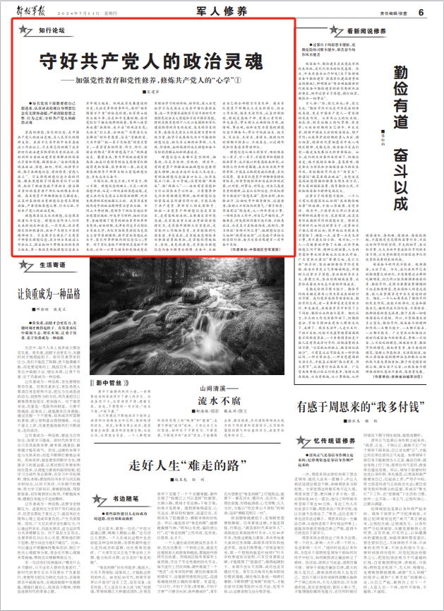 崇高的理想,堅(jiān)定的信念,是中國(guó)共產(chǎn)黨人的政治靈魂,是人民軍隊(duì)的精神支柱。在前不久召開(kāi)的中央軍委政治工作會(huì)議上,習(xí)主席總結(jié)回顧了我軍新時(shí)代政治建軍取得的歷史性成就,深刻剖析當(dāng)前政治建軍需要解決的深層次矛盾和問(wèn)題,強(qiáng)調(diào)指出,“這些問(wèn)題表現(xiàn)在政治、思想、組織、作風(fēng)、紀(jì)律等方面,根子在理想信念、黨性修養(yǎng)、官德人品上”。習(xí)主席將理想信念方面的問(wèn)題,擺在思想根子問(wèn)題的首位予以強(qiáng)調(diào),抓住了鍛造忠誠(chéng)干凈擔(dān)當(dāng)、堪當(dāng)強(qiáng)軍重任的高素質(zhì)干部隊(duì)伍的根本和關(guān)鍵。每名黨員干部都要把自己擺進(jìn)來(lái),認(rèn)真對(duì)表檢視自身理想信念有無(wú)滑坡動(dòng)搖,嚴(yán)肅清除思想之弊、行為之垢,守好共產(chǎn)黨人的政治靈魂。