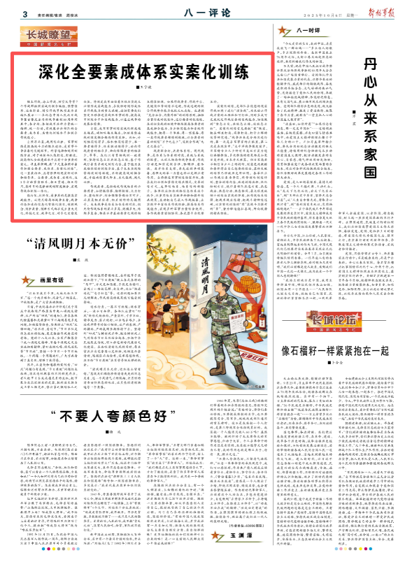 士因習(xí)而勇,戰(zhàn)因練而勝。軍事訓(xùn)練是提高戰(zhàn)斗力的根本途徑,是軍事斗爭(zhēng)準(zhǔn)備的關(guān)鍵環(huán)節(jié)??茖W(xué)選擇和運(yùn)用訓(xùn)練方法,對(duì)于確保部隊(duì)能打仗、打勝仗,提高部隊(duì)全面建設(shè)水平具有十分重要的意義。習(xí)主席強(qiáng)調(diào),要“立足復(fù)雜困難條件加強(qiáng)全要素、成體系、實(shí)案化訓(xùn)練”。這一重要指示,具有很強(qiáng)的現(xiàn)實(shí)針對(duì)性和指導(dǎo)性。全要素、成體系、實(shí)案化,這3個(gè)方面緊密聯(lián)系、相互貫通、相互作用,最終目的是推動(dòng)戰(zhàn)訓(xùn)深度耦合,實(shí)現(xiàn)作戰(zhàn)和訓(xùn)練一體化。