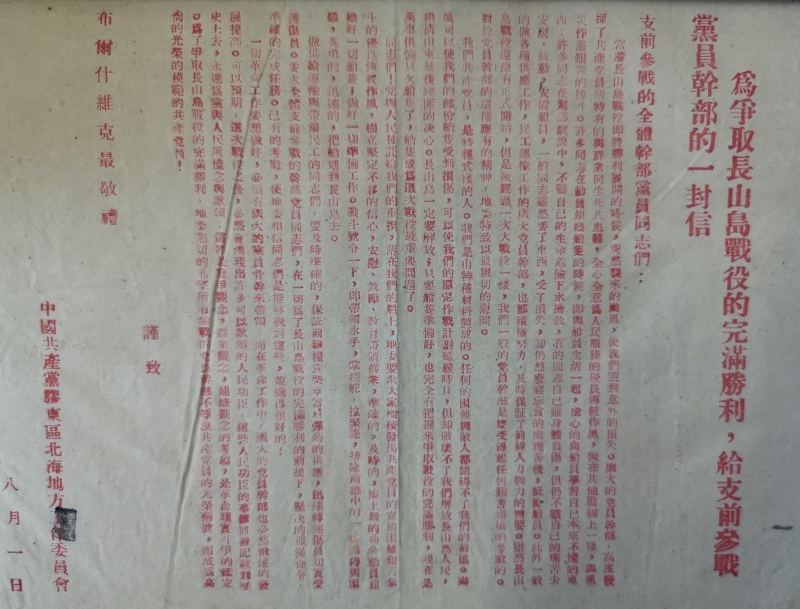 ▲中共北海地委《為爭取長山島戰(zhàn)役的完滿勝利給支前參戰(zhàn)黨員干部的一封信》。