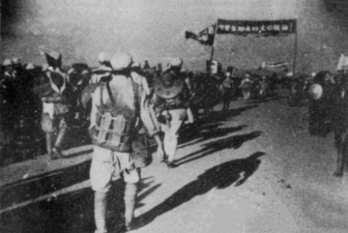 ▲奉命參加長山島戰(zhàn)役的部隊開赴前線。