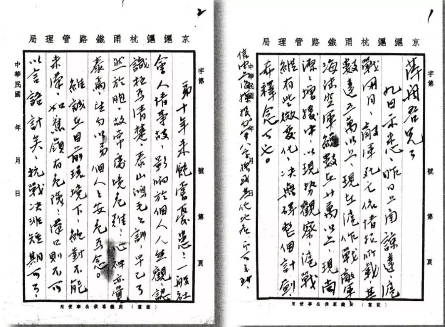 九日示悉,昨日上函諒達(dá)。滬戰(zhàn)兩月,敵軍死亡依情報(bào)所載,其數(shù)達(dá)五萬以上?,F(xiàn)在滬作戰(zhàn)敵軍海陸空軍總數(shù)在廿萬以上,現(xiàn)尚源源增援中,以現(xiàn)勢(shì)觀察,滬戰(zhàn)縱有些微變化,決無礙整個(gè)計(jì)劃,希釋念可也。