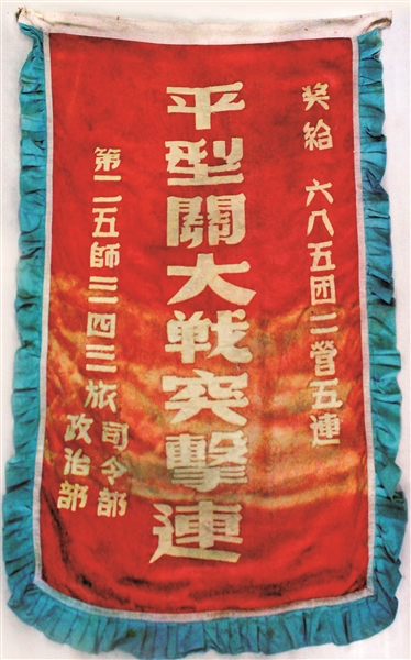▲“平型關(guān)大戰(zhàn)突擊連”戰(zhàn)旗。