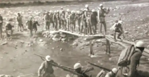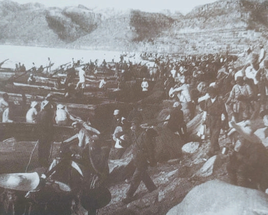 ▲1937年9月,八路軍一二九師經陜西省韓城縣芝川鎮(zhèn)東渡黃河,奔赴抗日前線。