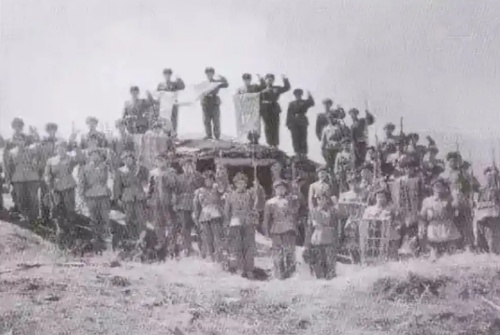 ▲我志愿軍官兵向英雄陣地“丁字山”告別。