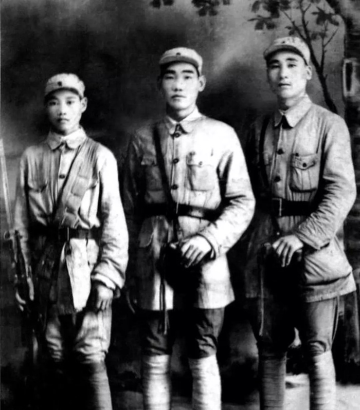 ▲抗日戰(zhàn)爭時期,亓榮友(右一)與戰(zhàn)友合影。