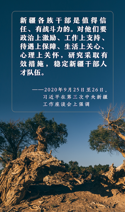 △2020年9月25日至26日,第三次中央新疆工作座談會(huì)在北京召開。習(xí)近平出席會(huì)議并發(fā)表重要講話。