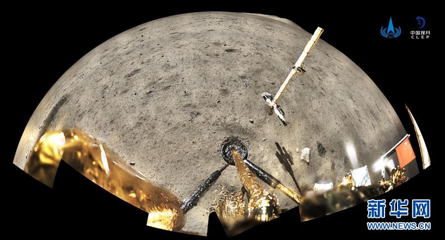 12月4日,國(guó)家航天局公布了探月工程嫦娥五號(hào)探測(cè)器在月球表面國(guó)旗展示的照片。嫦娥五號(hào)著陸器和上升器組合體全景相機(jī)環(huán)拍成像,五星紅旗在月面成功展開(kāi),此外圖像上方可見(jiàn)已完成表取采樣的機(jī)械臂及采樣器。新華社發(fā)(國(guó)家航天局供圖)