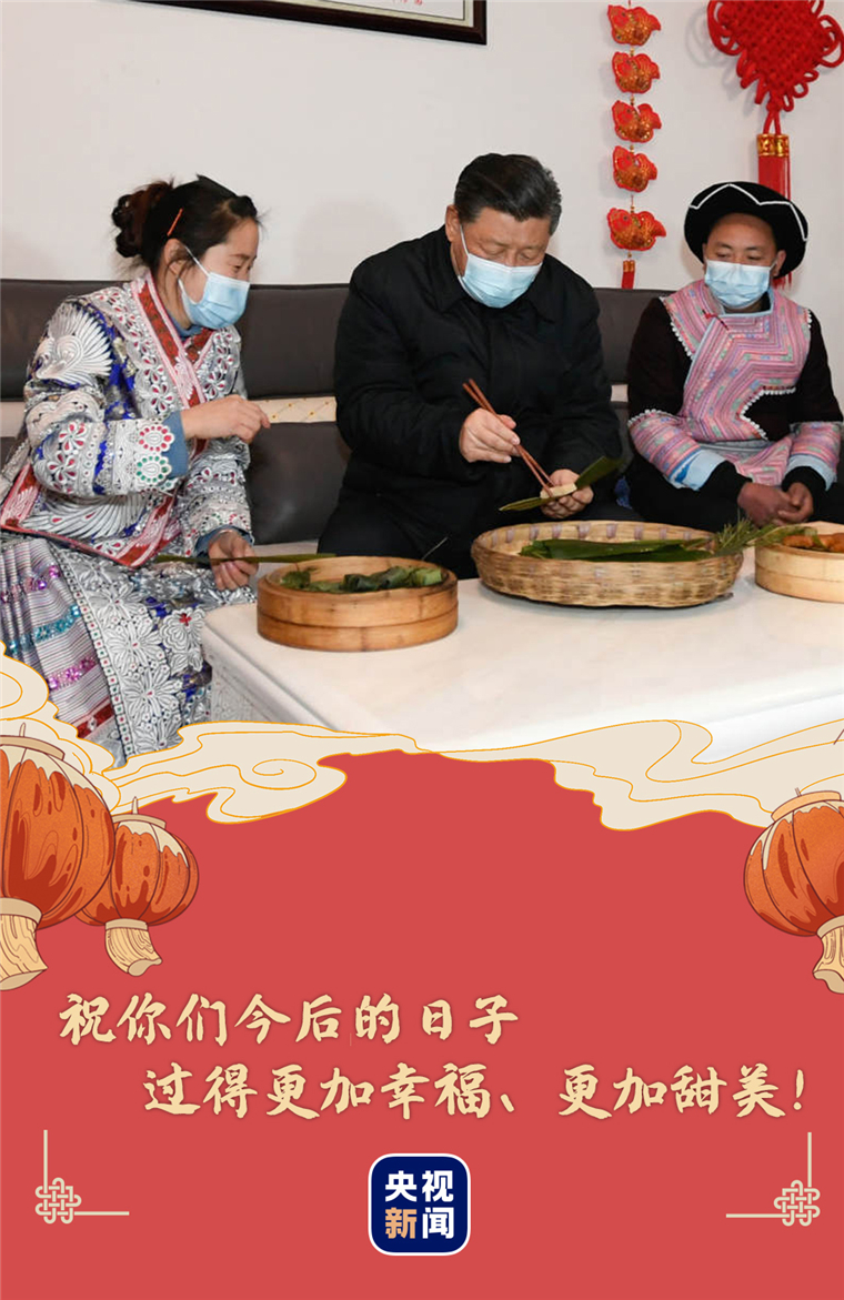 包黃粑,迎新年,總書記笑著對大家說:“祝你們今后的日子過得更加幸福、更加甜美!”