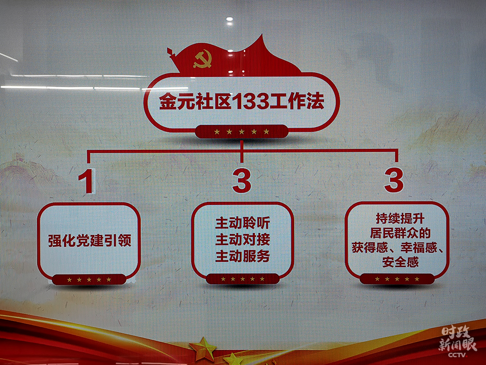 △金元社區(qū)的“133工作法”,“1”是強(qiáng)化黨建引領(lǐng),第一個(gè)“3”是社區(qū)工作要“主動(dòng)聆聽(tīng)、主動(dòng)對(duì)接、主動(dòng)服務(wù)”。(總臺(tái)央視記者楊立峰拍攝)