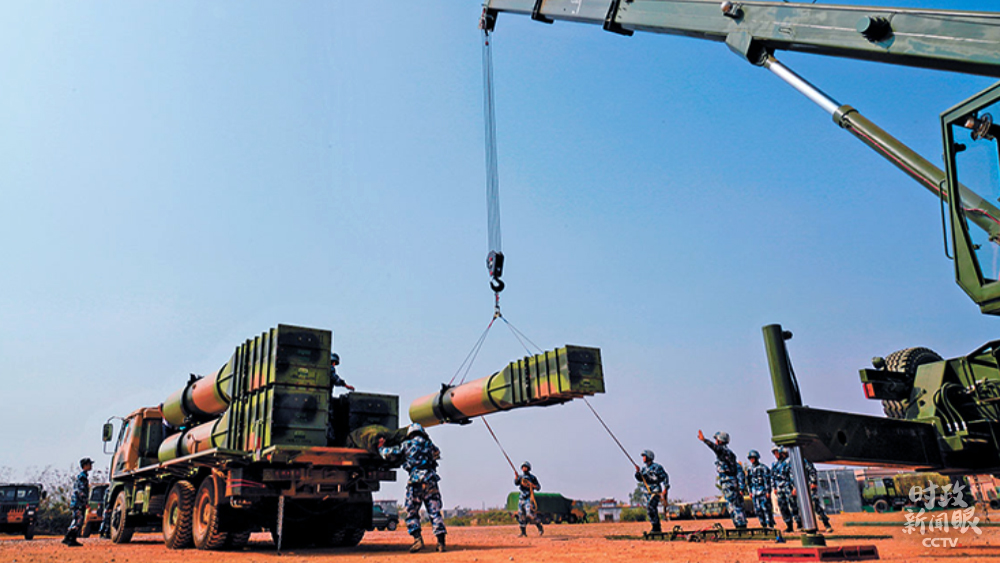 △近日,南部戰(zhàn)區(qū)空軍地導(dǎo)某旅開(kāi)展實(shí)戰(zhàn)化演練。這是官兵齊心協(xié)力吊裝導(dǎo)彈、精準(zhǔn)勘測(cè)陣地?cái)?shù)據(jù)等演練環(huán)節(jié)。(來(lái)源于中國(guó)軍網(wǎng))