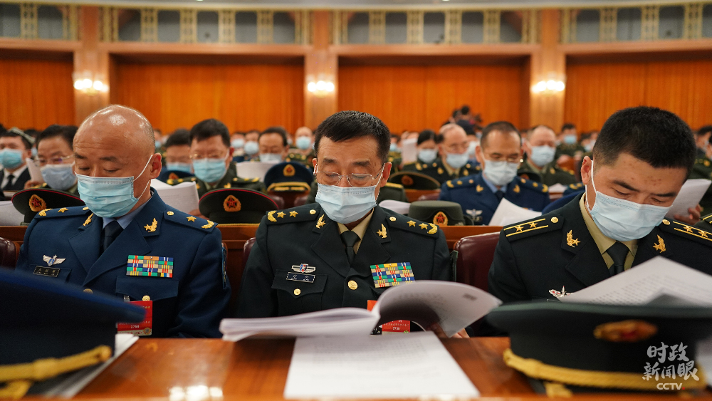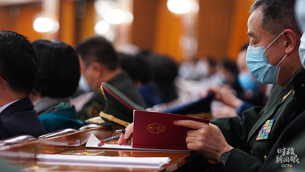 △十三屆全國(guó)人大四次會(huì)議第二次全體會(huì)議現(xiàn)場(chǎng)的解放軍代表(總臺(tái)國(guó)廣記者李晉拍攝)