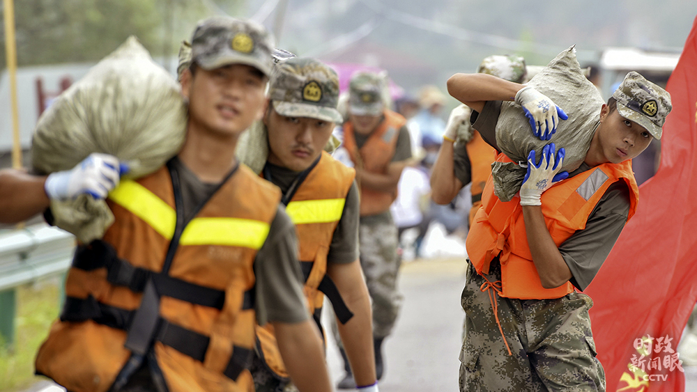 △2020年7月底,巢湖流域進(jìn)入緊急防汛期。中國(guó)人民解放軍73021部隊(duì)鐵騎先鋒營(yíng)430名指戰(zhàn)員奔赴一線,扛沙袋加固巢湖大堤。