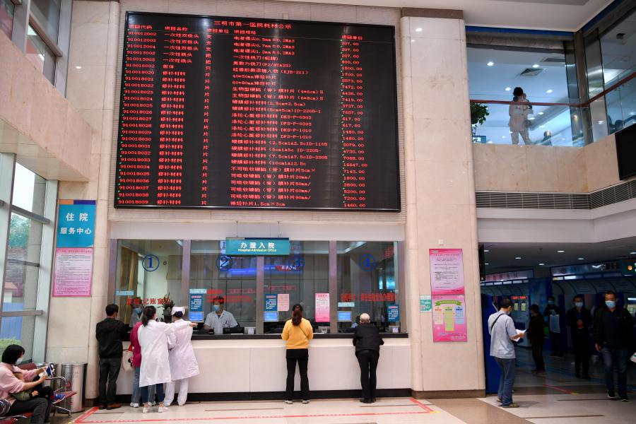 2020年11月18日,居民在福建省三明市第一醫(yī)院醫(yī)保辦咨詢、辦理手續(xù)。(新華社記者姜克紅攝)