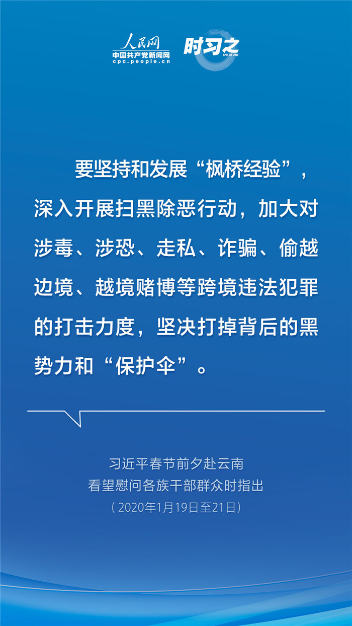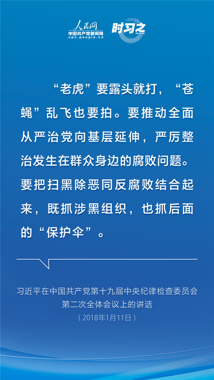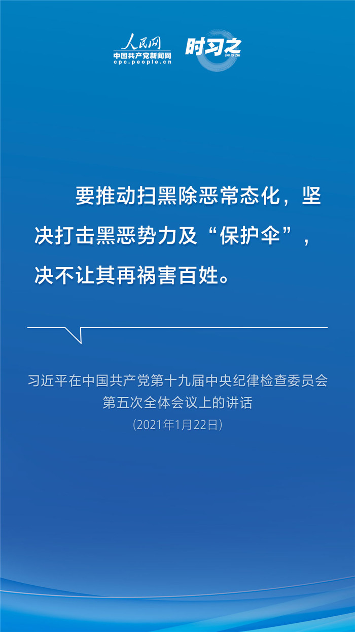 2018年1月起,為期3年的掃黑除惡專項(xiàng)斗爭(zhēng)在全國(guó)展開。三年來,打擊黑惡勢(shì)力和“打傘破網(wǎng)”一體推進(jìn),清除了一批害群之馬。在這期間,中共中央總書記、國(guó)家主席、中央軍委主席習(xí)近平也多次在不同場(chǎng)合就掃黑除惡專項(xiàng)斗爭(zhēng)作出重要論述,人民網(wǎng)·中國(guó)共產(chǎn)黨新聞網(wǎng)“時(shí)習(xí)之”欄目帶您重溫這些鏗鏘有力的聲音。