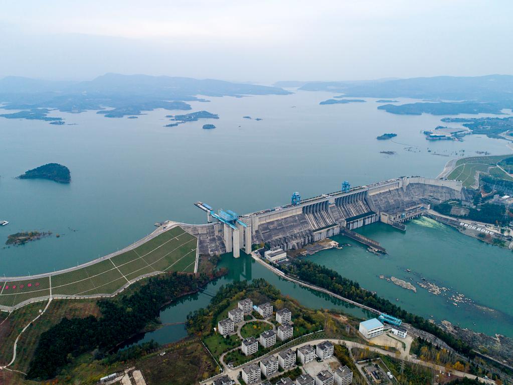 2019年11月26日無人機(jī)拍攝的丹江口水庫(kù)大壩。新華社記者 熊琦 攝
