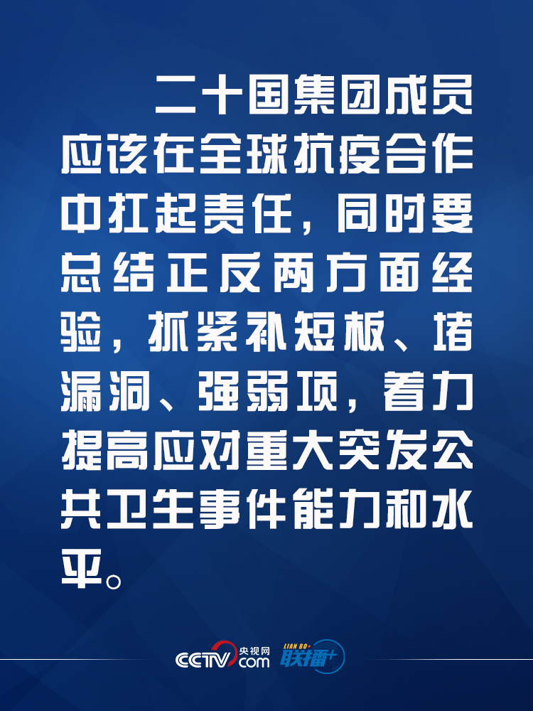 ●要提高監(jiān)測(cè)預(yù)警和應(yīng)急反應(yīng)能力、重大疫情救治能力、應(yīng)急物資儲(chǔ)備和保障能力、打擊虛假信息能力、向發(fā)展中國(guó)家提供支持能力。