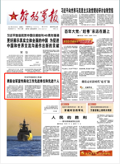 通報指出,近年來,全軍各級堅持以習近平新時代中國特色社會主義思想為指導(dǎo),深入貫徹習近平強軍思想,緊緊圍繞宣傳強軍思想、激發(fā)強軍精神、匯聚強軍力量、助推強軍實踐,聚焦備戰(zhàn)打仗主責主業(yè),面向部隊、面向基層、面向官兵,深入扎實做好宣傳輿論工作,涌現(xiàn)出一批先進單位和先進個人。