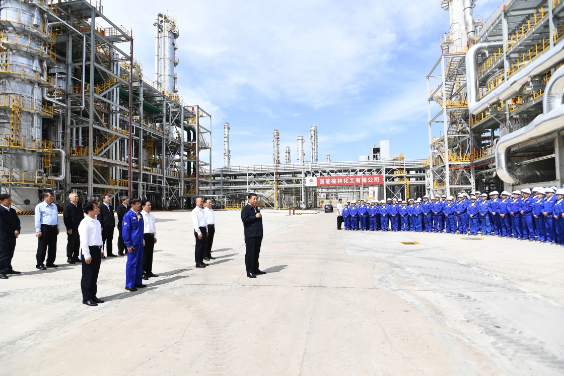 13日上午,習(xí)近平首先來到國(guó)家能源集團(tuán)榆林化工有限公司,了解循環(huán)經(jīng)濟(jì)煤炭綜合利用項(xiàng)目規(guī)劃建設(shè)運(yùn)行情況。在中心控制室,習(xí)近平觀看項(xiàng)目產(chǎn)品展示,對(duì)企業(yè)堅(jiān)持創(chuàng)新發(fā)展,堅(jiān)持安全、穩(wěn)定、清潔運(yùn)行的做法表示肯定。隨后,習(xí)近平到年產(chǎn)40萬噸乙二醇項(xiàng)目現(xiàn)場(chǎng)察看,詢問煤化工深度發(fā)展有關(guān)情況,同企業(yè)職工代表親切交流。他強(qiáng)調(diào),榆林是國(guó)家重要能源基地,為國(guó)家經(jīng)濟(jì)社會(huì)發(fā)展作出了重要貢獻(xiàn)。煤炭作為我國(guó)主體能源,要按照綠色低碳的發(fā)展方向,對(duì)標(biāo)實(shí)現(xiàn)碳達(dá)峰、碳中和目標(biāo)任務(wù),立足國(guó)情、控制總量、兜住底線,有序減量替代,推進(jìn)煤炭消費(fèi)轉(zhuǎn)型升級(jí)。煤化工產(chǎn)業(yè)潛力巨大、大有前途,要提高煤炭作為化工原料的綜合利用效能,促進(jìn)煤化工產(chǎn)業(yè)高端化、多元化、低碳化發(fā)展,把加強(qiáng)科技創(chuàng)新作為最緊迫任務(wù),加快關(guān)鍵核心技術(shù)攻關(guān),積極發(fā)展煤基特種燃料、煤基生物可降解材料等。
