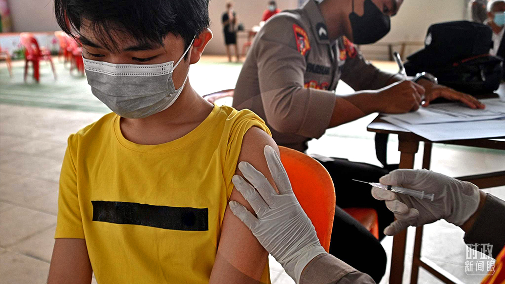 △2021年9月22日,印度尼西亞班達(dá)亞齊,當(dāng)?shù)孛癖娊臃N中國(guó)新冠疫苗。(圖/視覺(jué)中國(guó))