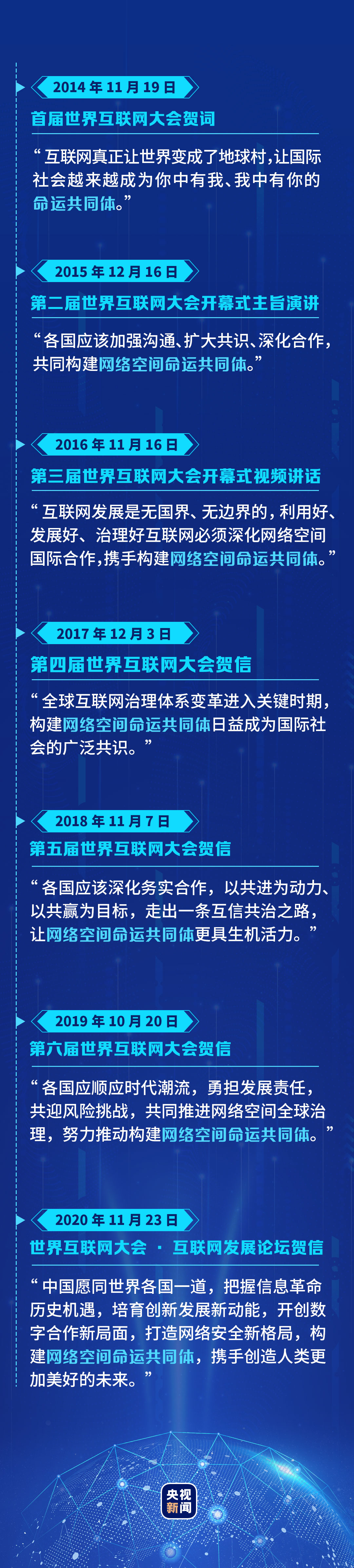 致賀詞、出席開幕式并發(fā)表主旨演講、發(fā)表視頻講話、致賀信......習(xí)近平秉持人類命運(yùn)共同體理念,就互聯(lián)網(wǎng)發(fā)展大勢等作出了一系列具有重大現(xiàn)實(shí)意義和深遠(yuǎn)歷史意義的重要論述,為全球互聯(lián)網(wǎng)治理提出中國倡議、中國方案。