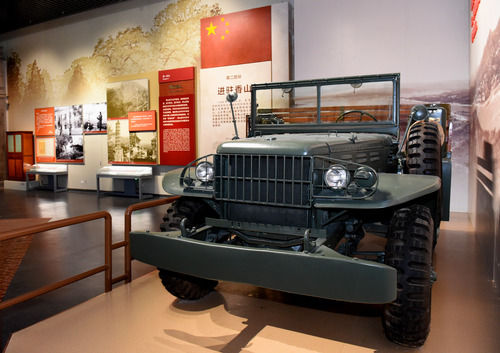 香山革命紀(jì)念館中,《為新中國(guó)奠基——中共中央在香山》主題展覽展出的中共中央遷駐香山時(shí)使用的同型吉普車(2019年9月7日攝)。新華社記者 任超 攝