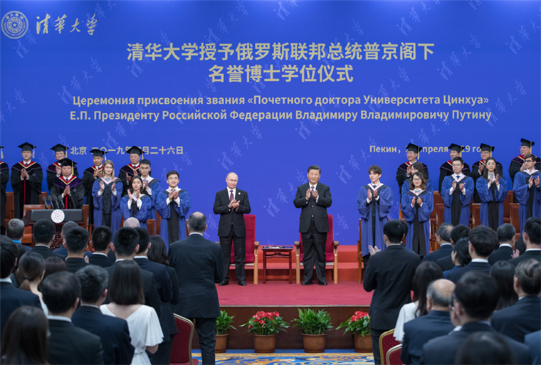 △2019年4月26日,清華大學(xué)向普京總統(tǒng)頒授名譽博士學(xué)位。