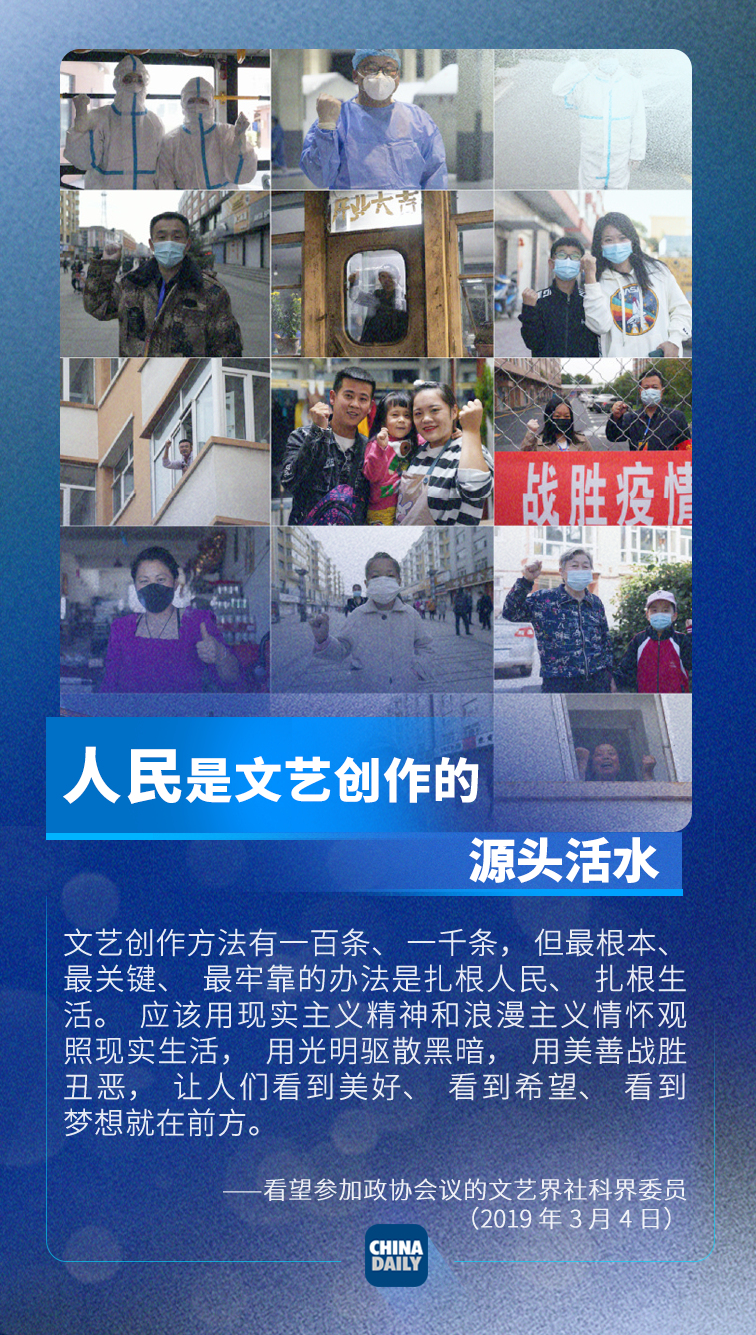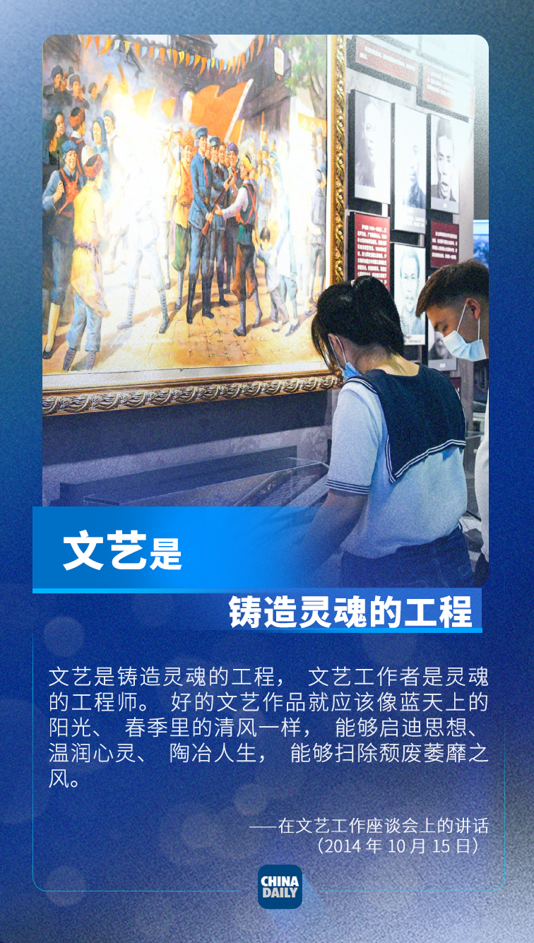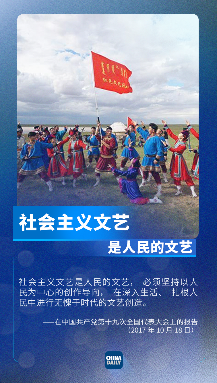 2014年10月15日,習(xí)近平總書(shū)記主持召開(kāi)文藝工作座談會(huì)強(qiáng)調(diào),堅(jiān)持以人民為中心的創(chuàng)作導(dǎo)向,創(chuàng)作更多無(wú)愧于時(shí)代的優(yōu)秀作品。關(guān)于文藝工作,習(xí)近平總書(shū)記有哪些重要論述?中國(guó)日?qǐng)?bào)網(wǎng)帶你一起學(xué)習(xí)。