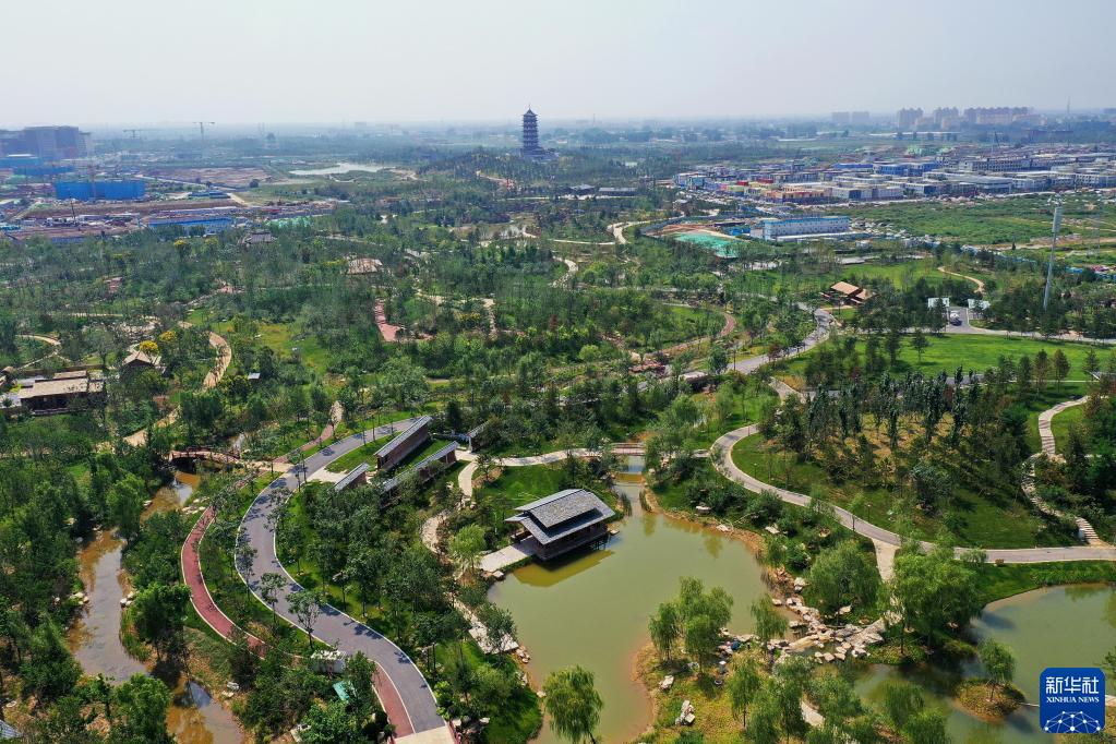 這是雄安新區(qū)悅?cè)莨珗@北苑內(nèi)的景色(9月1日攝,無人機照片)。新華社記者 牟宇 攝