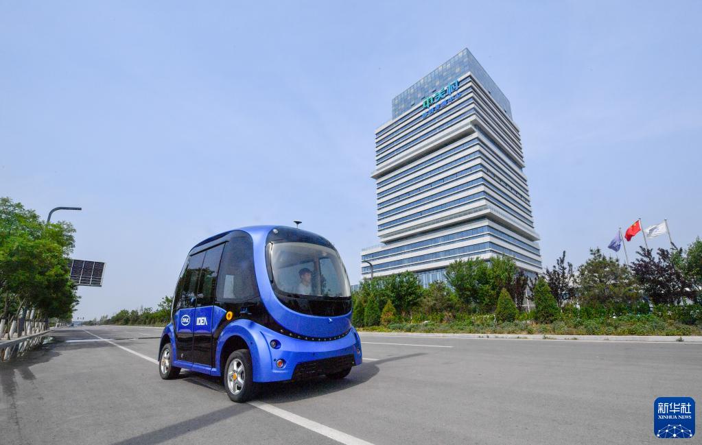 一輛無人駕駛汽車在京津中關(guān)村科技城內(nèi)部道路進行道路測試(5月19日攝)。新華社記者 孫凡越 攝