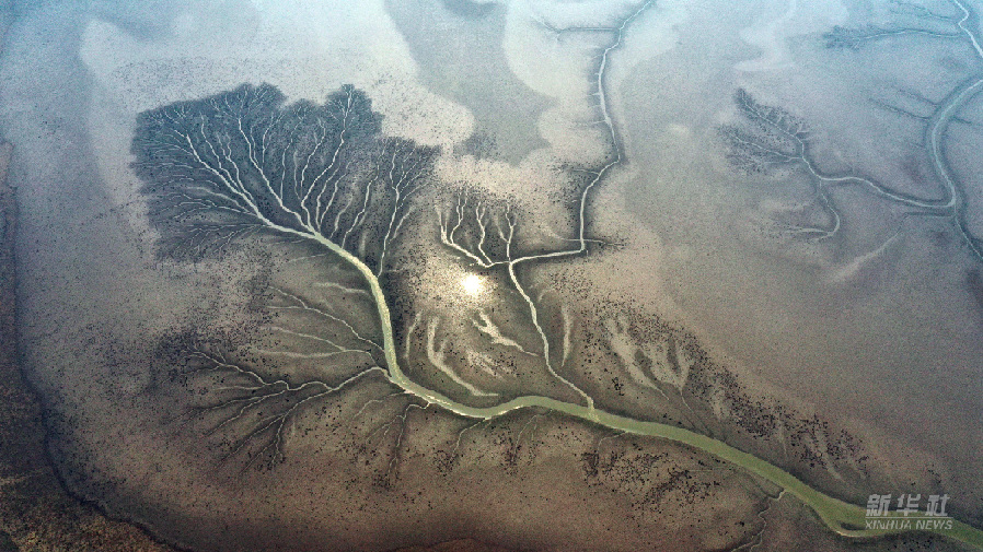 山東黃河三角洲國家級自然保護區(qū)景色(無人機照片,2021年5月13日攝)。