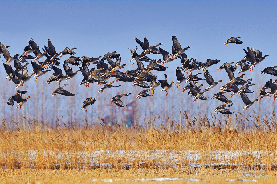 在自然保護區(qū)里拍攝的豆雁群(資料照片)。